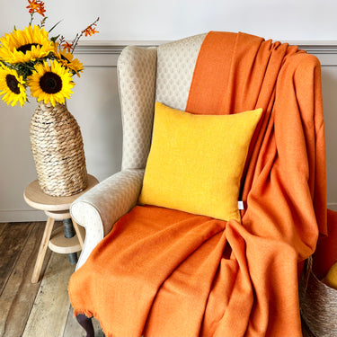 This pure wool cushion features a solid mustard yellow colour on both the front and back and a coordinating concealed zip along the bottom seam. The cushion proudly exhibits the Harris Tweed authenticity label, adorned with the iconic Orb symbol that is globally recognised as the hallmark of Harris Tweed authenticity.